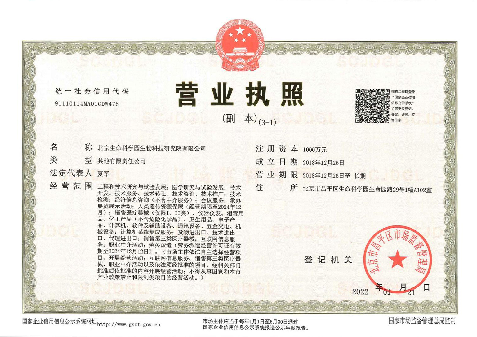 北京生命科學園生物科技研究院(以下簡稱“北京生物樣本資源庫”)(Biobank of Life Science Park,簡寫“BoLSP”)是一家由北京市科委和中關(guān)村生命科學園共同支持設(shè)立的第三方生物樣本庫公共服務(wù)平臺,秉承北京重大疾病臨床數(shù)據(jù)和樣本資源庫(以下簡稱“北京庫”)(Beijing Biobank of Clinical Resources,BBCR)十余年的發(fā)展成果,聚合眾多臨床樣本專家的專業(yè)共識,致力于在生命科學、生物醫(yī)藥研究領(lǐng)域發(fā)揮銜接樣本資源持有者與研究者的橋梁作用,解決生物樣本資源開發(fā)上下游信息不對稱、資源共享困難等問題。研究院在北京中關(guān)村生命科學園昌平園區(qū)建立了2000㎡生物樣本庫,最大存儲規(guī)模達1000萬份。研究院遵循CNAS-CL10:2020《生物樣本庫質(zhì)量和能力認可準則》,同時結(jié)合北京庫過去十年的工作經(jīng)驗與教訓,建立了一套完善的生物樣本保藏質(zhì)量管理體系,從人、機、料、法、環(huán)、控多個角度,實現(xiàn)生物樣本保藏過程的全面質(zhì)量控制,先后獲得國家科技部頒發(fā)的人類遺傳資源保藏行政許可證書和中國合格評定國家認可委員會(China National Accreditation Service for Conformity Assessment,CNAS)頒發(fā)的“CNAS認可證書”。